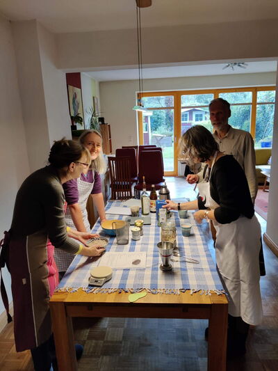 Am Samstag geht es dann morgens zwischen 9 oder 10 Uhr weiter für nochmal ca. 4 Stunden. Wir machen uns ein leckeres Frühstück und werden schon das erste Brot probieren und auch eins im Ofen backen.